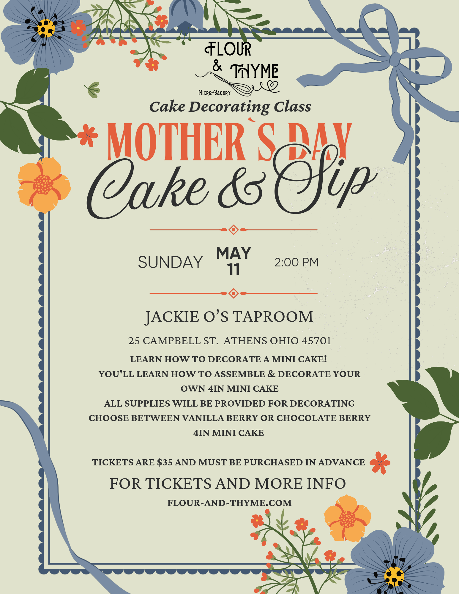 Please join us for a Mother’s Day Cake & Sip at the Athens Taproom on Sunday, May 11th!